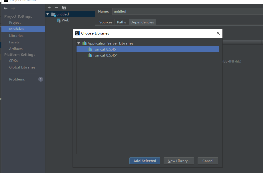 然后再选择+号,选择Library,弹框选择Tomcat,点击Add Selected。返回上一页面,点击OK