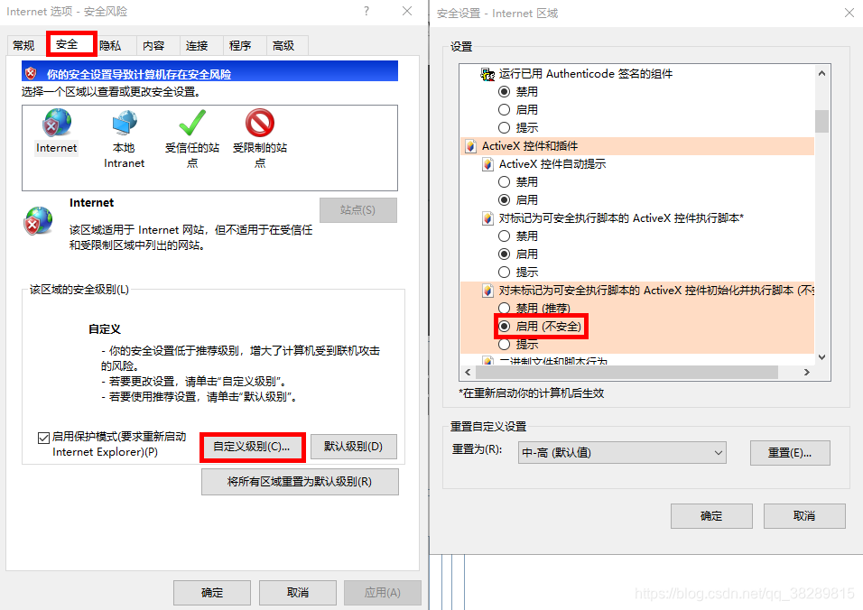 (2)使用IE浏览器时需要允许插件运行,可能还需要配置,将ActiveX控件和插件里的内容设置为启用或者提示。搜狗浏览器也行,但是要使用兼容模式,就是把网址后面的"闪电"点一下,它就会变成IE的图标,就成转换成兼容模式了。