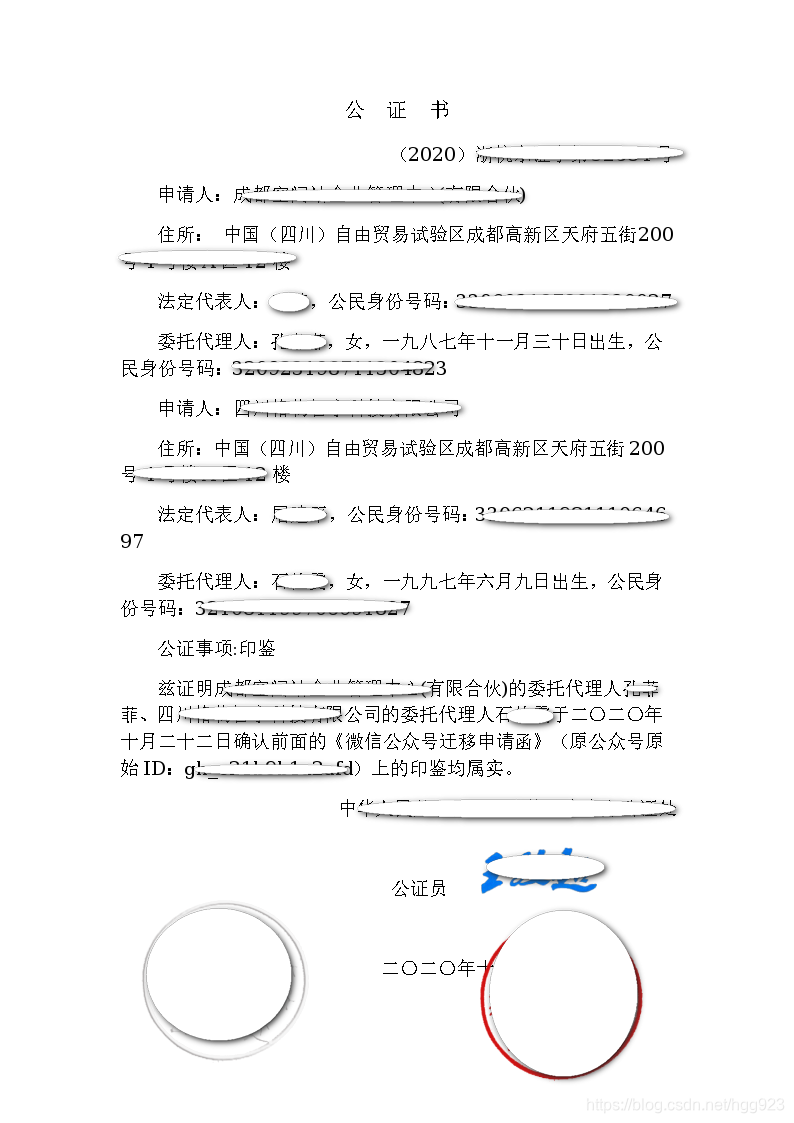 1、账号迁移公函、公证书如图