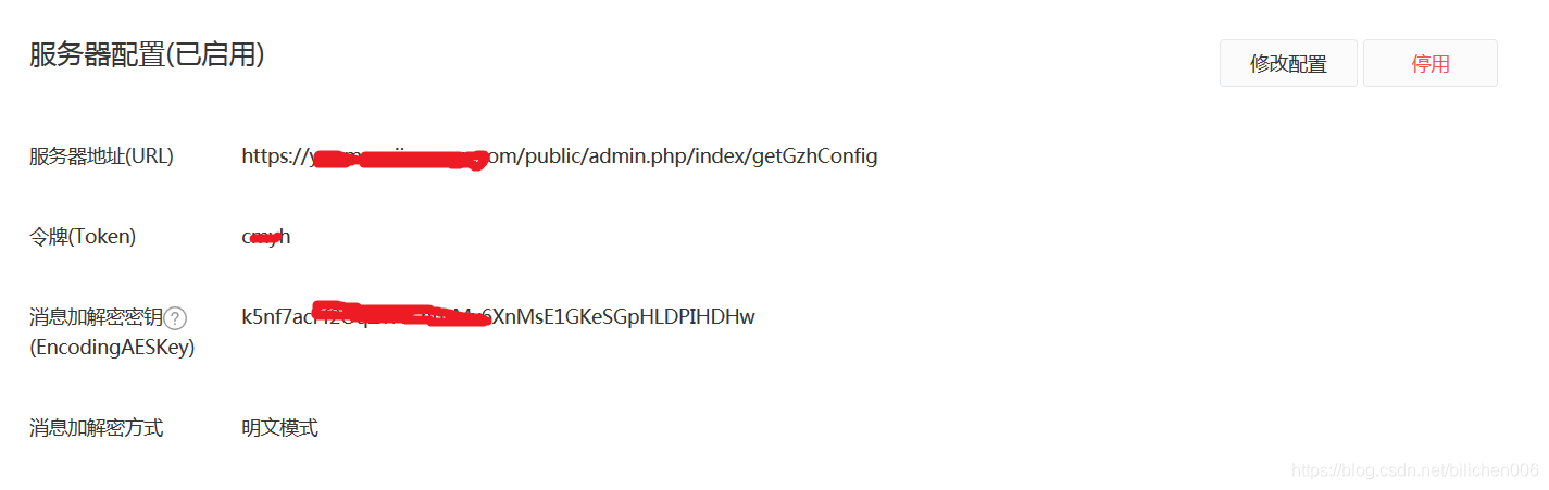 三、在公众号中基本配置-服务器配置(启用-注意,启用此配置后,公众号自定义菜单会失效,需要自己开发对应的功能)