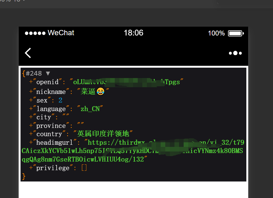 在微信开发者工具上访问 域名/wxcode 就可以获取到用户信息了