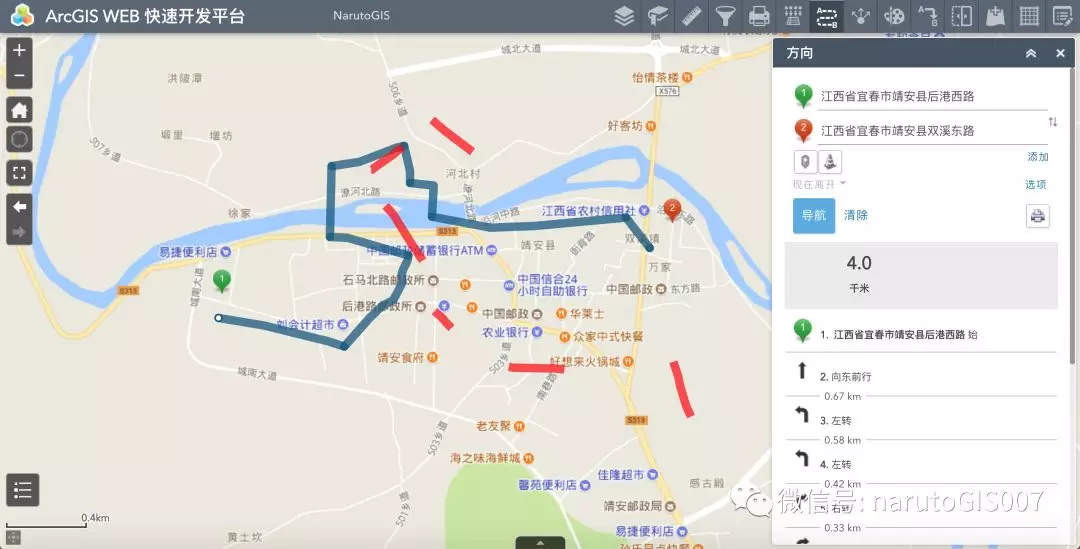 最短路径分析:配置路径分析服务,设置两个点,以及障碍,获取最短路径。